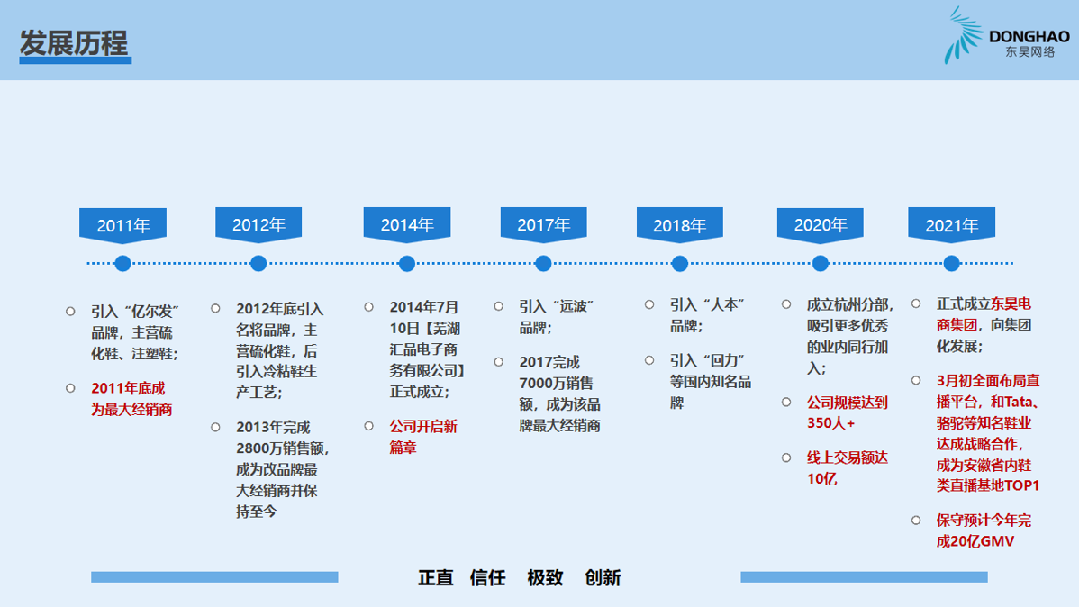 蕪湖東昊網(wǎng)絡科技有限公司,成立于 2014 年,是一家以互聯(lián)網(wǎng)平臺銷售為核心的電子商務運營商,公司成立以來,始終專注于休閑運動鞋的互聯(lián)網(wǎng)銷售業(yè)務,產(chǎn)品線覆蓋硫化鞋、注塑鞋、冷粘鞋,在互聯(lián)網(wǎng)二級類目單品牌排名前三,綜合成績排名TOP1;